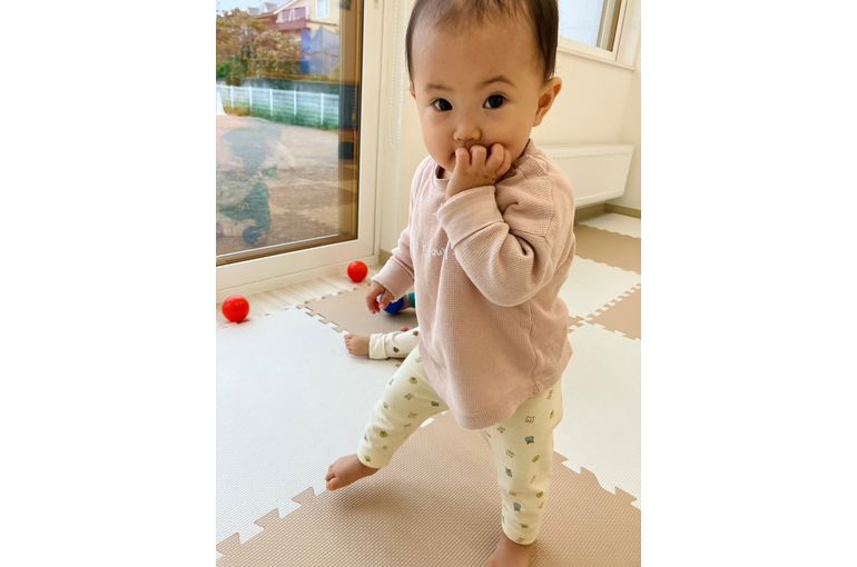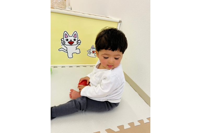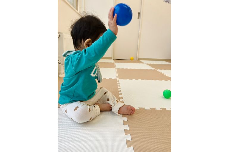 保育士がコロコロと転がすのを見てニコニコ![]()