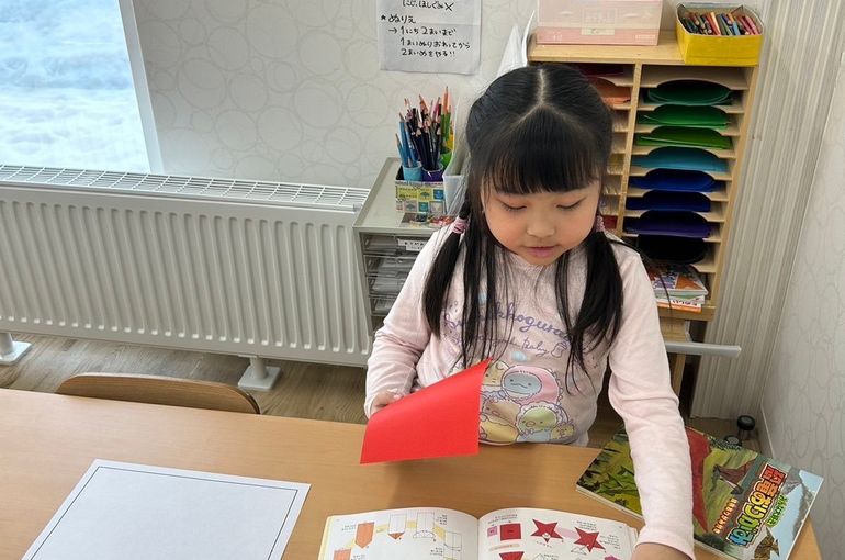 集中して数字のお勉強をしたり、本を見ながら折り紙を折る練習をしました![]()