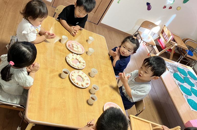 おやつの時間はうさぎの形のサンドイッチに大歓声☆