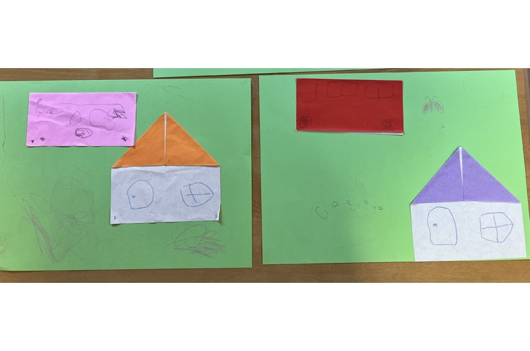 お家や車などを折り、画用紙に貼るととても嬉しそうに見つめていました(≧▽≦)
