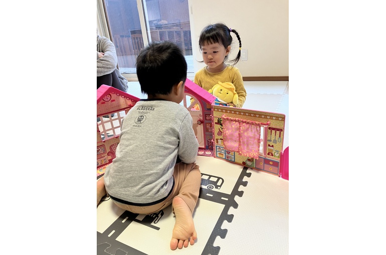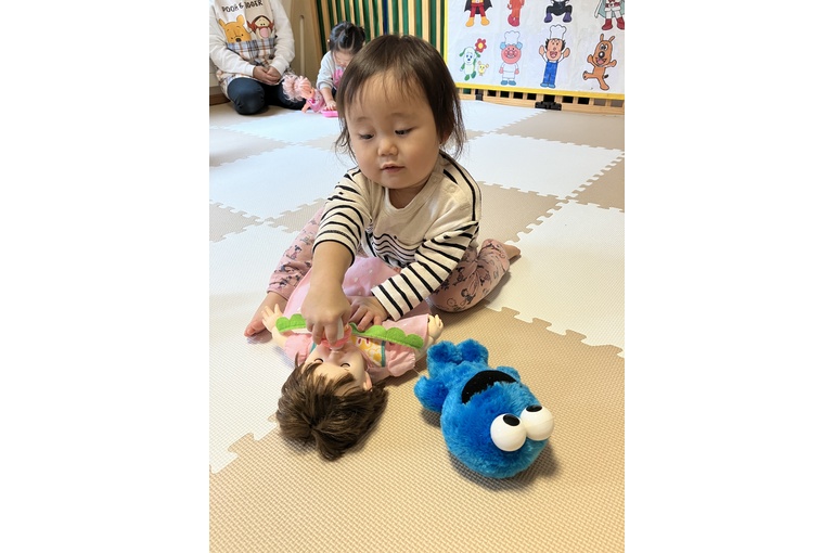 上手にお人形にミルクをあげたり、お家のインターホンを『ピンポーン!』と鳴らして「○○くん、いますか~?」などと声を掛け、お友だちとやりとりを楽しんでいます♪