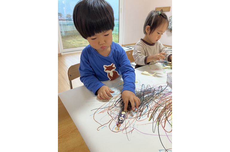 ぐるぐると好きなクレヨンで力強くな描いたり、