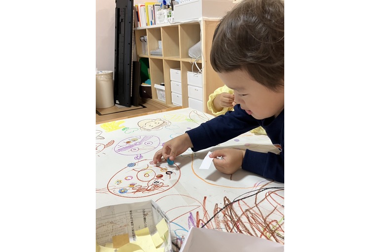 指先を器用に使って好きなシールを張ったり剥がしたり♪