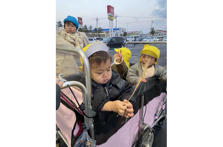 園の近くには大きなツリーがあり「きれいだね~」とみんな目をキラキラさせています♪