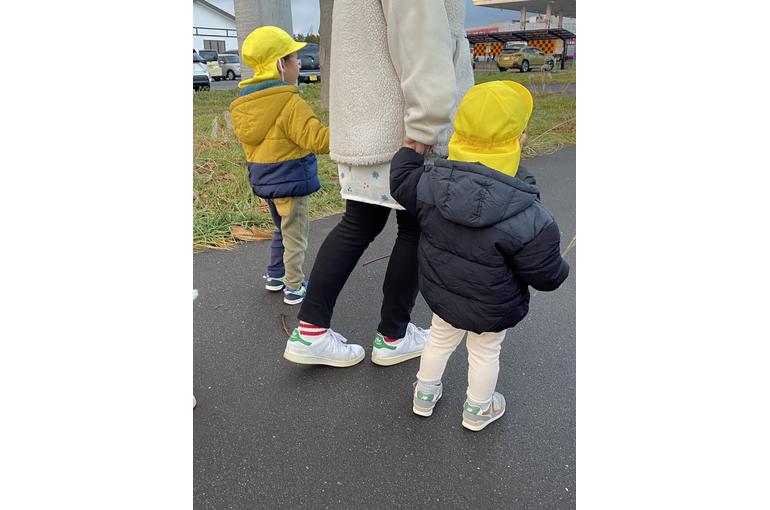 雪が降ったり融けたりしていますが、暖かい日はまだまだ元気にお散歩へ!