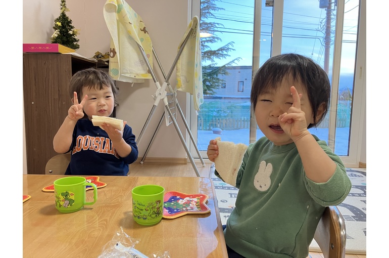 毎朝練習したジングルベルのうたをサンタさんに聴いてもらったり、「うさぎ野原のクリスマス」のパネルシアターをみたり、プレゼントをもらって「ありがとう」と大きな声で伝えたり、楽しいクリスマスがあっという間に終わりもう年末に。