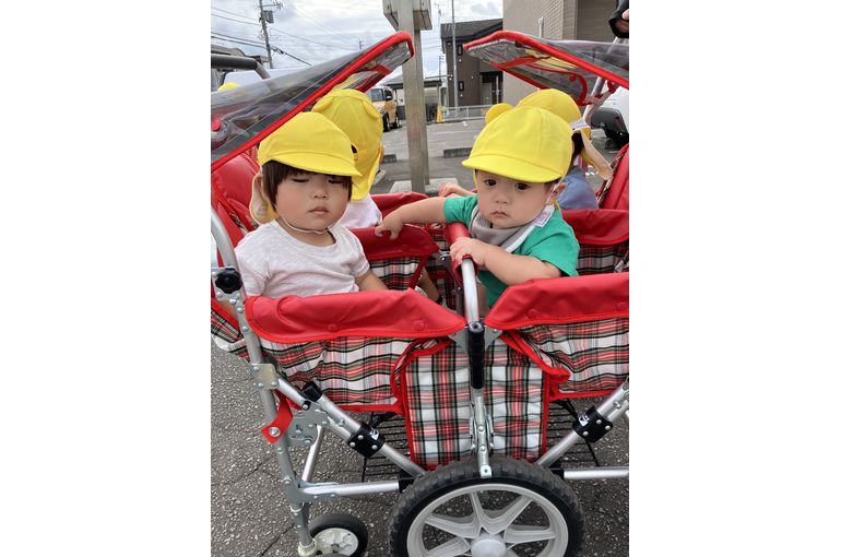 新しく入園したお友だちは保育園で初めてのお散歩でした♪