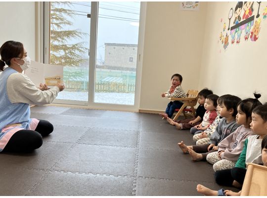 2024/04/11 桔梗園4月になりあたらしいお友だちがはいってきた保育園! 初めましてのお友だちの名前を呼んであげたり、近づいてなでてあげたり、優しい姿を見せる在園児さん♪ -