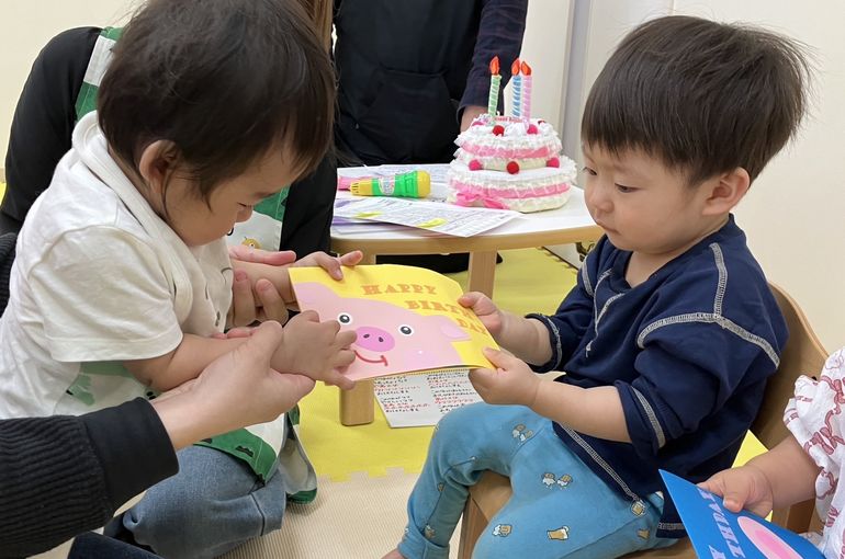 今回は3人のお友だちが誕生日で、みんな2歳になりました!👏