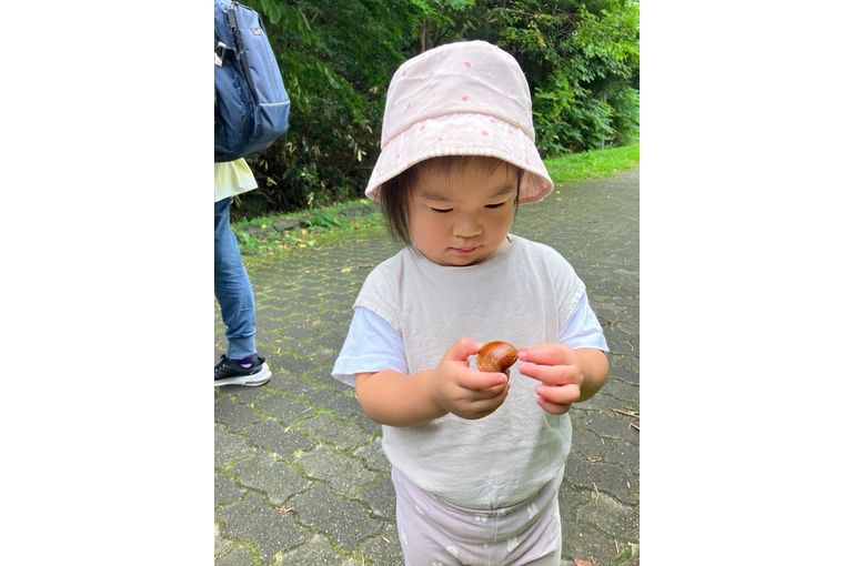 陽射しはまだまだ暑いですが、ひゅ〜っと吹く風は涼しく秋を感じるようになりましたね😌 お散歩では、なんと木から落ちた柿やぷっくりとした栗🌰を発見‼️なにこれ〜?と興味津々で手に取り、じーっと観察👀 ぷっくりツヤツヤの栗🌰が人気で私も欲しい!とみんなで栗探しをしました🎶 これからの季節、紅葉🍁や栗、どんぐりが増えていくので秋の散歩が楽しみです😊🍂🌰