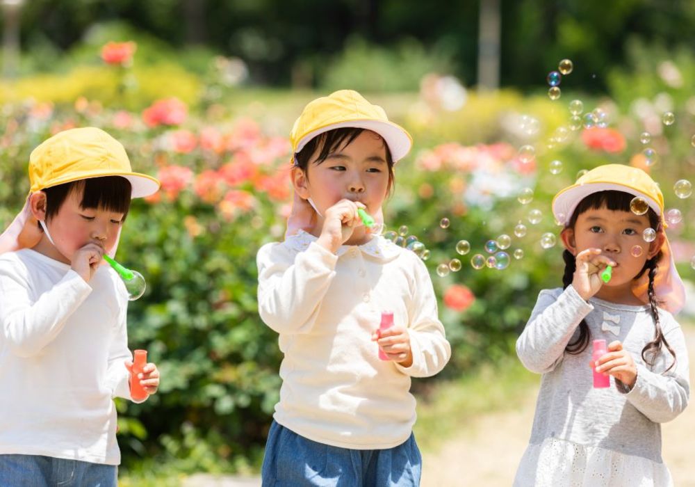 自然や季節の変化に触れながら自由に表現できる時間を設け、心と身体がバランスよく成長するようサポート。